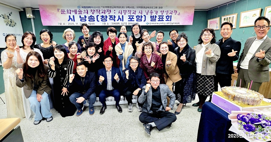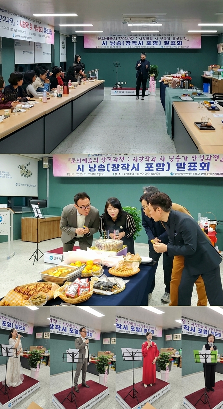 광주·전남지역대학(학장 김진호)이 8월 28일부터 12주 과정으로 진행한 ‘문화예술의 창작과정: 시창작 및 시낭송가 양성 과정’을 마무리하면서 11월 20일 오후 6시 지역대학 207호 강의실에서 ‘시창작 및 시낭송 발표회’를 개최했다.