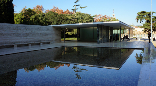 「바르셀로나 파빌리언」(1929) - 루트비히 미스 반 데어 로에의 작품으로, 유명한 근대 건축물 중 하나다. 스페인 카탈루냐 지방 바르셀로나에 위치한 건축물이다.