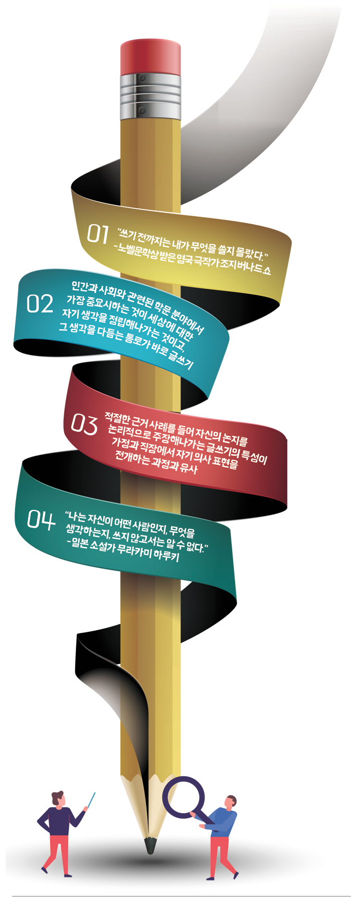 글쓰기란 단순히 자기 생각을 기록하는 행위가 아니라, 생각의 바탕을 이루는 적극적인 활동이다. 또한, 자신이 터득한 지식을 자랑하는 수단이 아닌, 어떤 주제에 관해 깊이 생각할 수 있는 능력이다. 이런 맥락에서 이 교수의 조언은, 세상을 이해하고 세상에 대한 자기 생각을 정립한 후, 타인에게 전달함으로써 소통·교류하고, 이를 통해 세상을 바꿔나가는 방법이자 통로로서 글쓰기의 의미를 확장하자는 의미로 읽힌다.