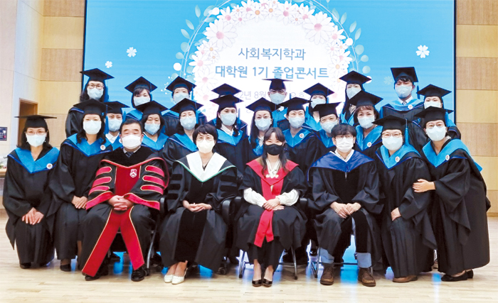방송대 대학원 사회복지학과 1기 졸업파티가 지난 21일 서울 방송대 대학본부 열린관에서 총원우회(회장 유희정) 주도로 열렸다. 1기 졸업생 30명과 가족, 지인 등 120여명이 모인 가운데 이현숙 사회복지학과 학과장 등 학과 교수 전원이 졸업파티에 참여했다.