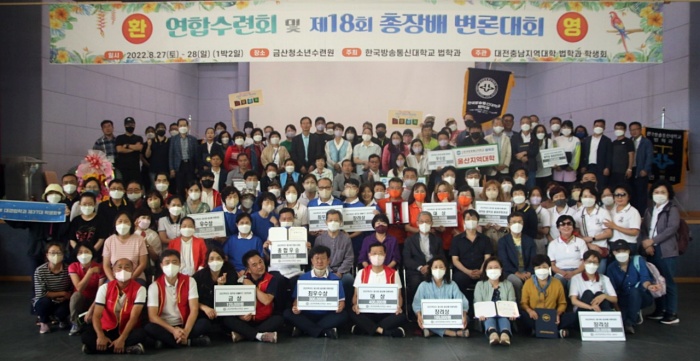 법학과(학과장 이호행)는 제18회 총장배 변론대회와 전국 연합수련회를 8월 27, 28일 양일간 금산 청소년수련원에서 개최했다. 이번 행사는 충남지역대학 주관으로 열렸으며, 전국에서 약 500여 명의 재학생과 동문이 참여해 열기를 더했다.