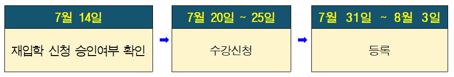 ※ 수강교과목 미신청 및 등록금 미납 시에는 재입학 승인이 취소됨