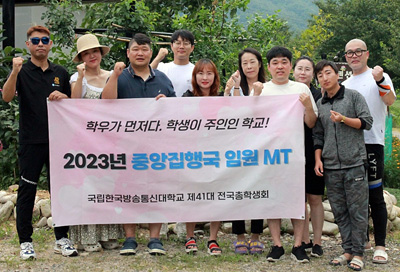 제41대 전국총학생회(회장 서평일)가 지난 8월 5일부터 이틀간 강원도 양양에서 중앙집행국 임원 MT를 진행했다. (왼쪽부터) 이효재 교무부총, 유제이 정책국장, 서평일 전총회장, 오영석 학습국장, 구은주 편집국장, 윤소영 관리국장, 박종호 실무부총, 박경화 사무국장, 고건영 홍보국장, 김성삼 인권국장이 기념 사진을 촬영했다.