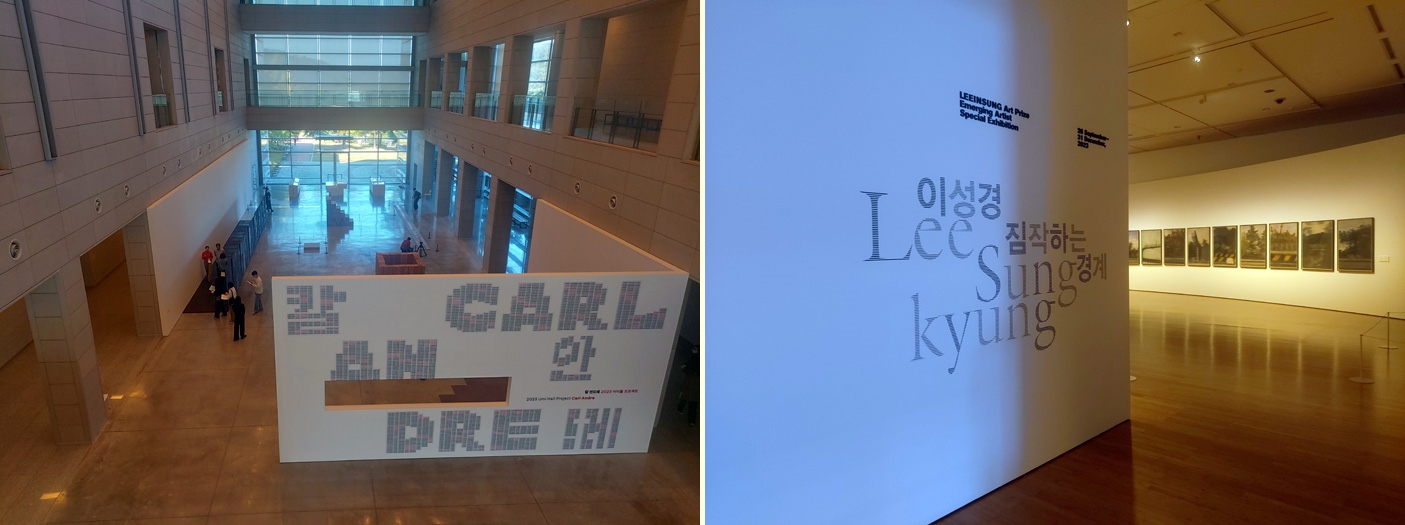 건축가들은 경사지의 지형을 오르는 전통적 공간구성 방식인 석단(石壇)-단형구조를 취해 단계적 변화와 수평의 리듬을 부각했다. 좌우로 길게 펼쳐진 미술관 건물의 수평적 전개는 해인사 대장경판고나 종묘의 선적 매스(mass)를 참조한 것이라고 한다. 그러니 미술관 건물에 입장하기 전에 건물 주변을 오르락내리락 한 바퀴 빙 둘러보면서 건축에 내재된 전통적 요소들을 탐사해 보는 시간을 가져도 좋을 것이다.