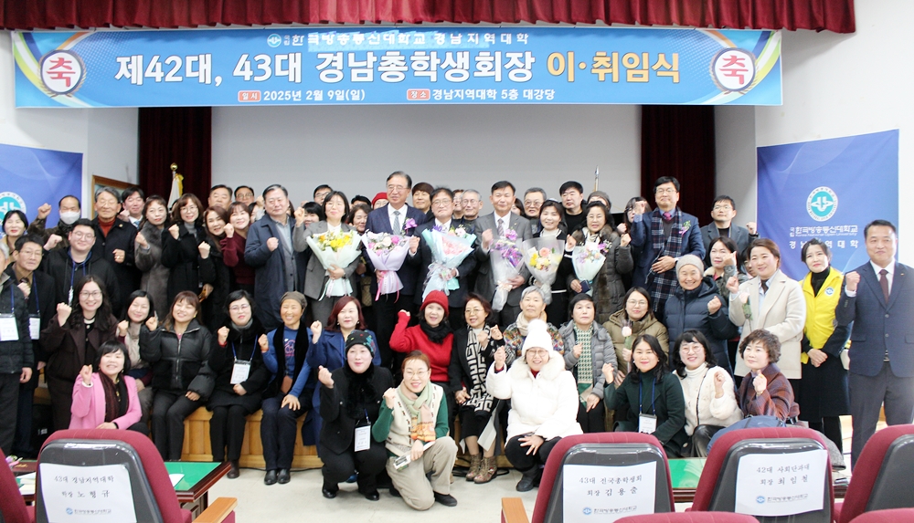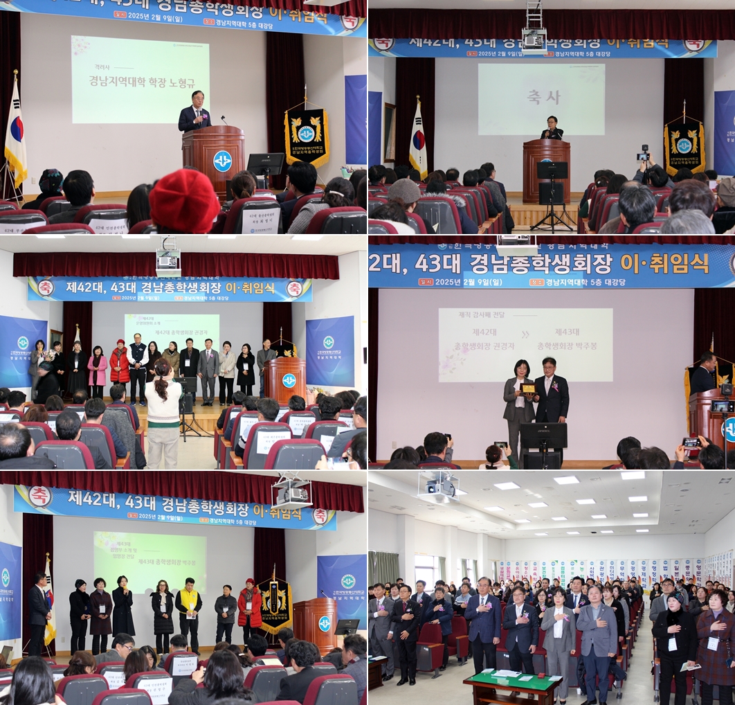 경남총학생회가 2월 9일 오후 2시 경남지역대학 대강당에서 42·43대 총학생회장 이·취임식을 개최했다. 이날 행사에는 노형규 경남지역대학장을 비롯해 지역 동문들과 재학생 등 200여 명이 참석해 뜻깊은 순간을 함께 했다.