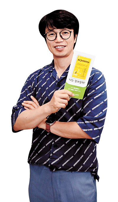 알쓰패치, 노담패치입니다. ‘알쓰’는 신조어로 ‘알코올+쓰레기’의 준말인데요, 술을 못하는 사람을 뜻하죠. MZ세대인 분들은 딱 알아듣더라고요. ‘노담’은 ‘No+담배’란 신조어로, ‘담배를 피지 말자’라는 뜻을 담고 있습니다. 요즘 이 두 제품 때문에 다른 일들엔 시간을 못 쓰고 있습니다. 우리나라는 3명 중 1명이 알쓰에 해당합니다. 유전적인 거라 이 비율은 바뀌지 않습니다. 알쓰패치는 내가 알쓰인지 알아보는 패치입니다. 패치를 팔뚝 안쪽에 붙이고 빨개진다면 알쓰인 거죠. 알코올 및 아세트알데히드의 산화 반응은 섭취해야만 일어나는 게 아니라 피부에서도 일어납니다. 알코올 피부 국소 반응법이죠. 알코올이 아세트알데히드로, 또 이 아세트알데히드가 ALDH 효소반응으로 분해되는 과정을 통해 해독됩니다. 그런데 ALDH가 부족하면 아세트알데히드 물질이 축적되고, 이 물질이 히스타민 반응을 일으켜 혈관을 확장시키고 피부를 빨개지게 만듭니다. 알쓰패치의 원리죠.