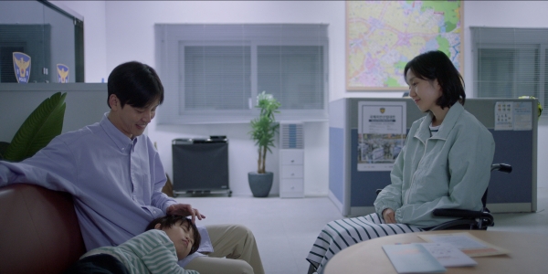 오프닝이죠. 호선과 은진이 계단 내려와서 휠체어 굴리면서 카메라에 막 다가오는 장면을 찍을 때 배우들, 스태프들 전부 좋아했던 거 같아요. 또 있어요. 은진이 힘들었다고 말하는 장면 바로 앞에 복도로 나오면서 우는 장면이 있는데요. 사실 그 장면 찍을 때 걱정을 좀 많이 했거든요. 배우들이 스케줄이 다들 바빴거든요. 코너를 돌아 나오면서 바로 울어야 하는 장면이었는데, 첫 테이크를 OK로 쓸 정도로 표정부터 너무 좋았어요. 이건 정말 김시은 배우에 대한 예찬인데요. 첫 테이크부터 정말 준비가 돼 있는 배우입니다. 버릴 게 없이 처음부터 다 보여줄 수 있는 배우예요. 그때가 촬영 막바지였긴 했지만, 김시은 배우에 대한 신뢰가 더 생겼어요.
