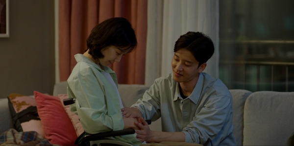 앞에 말씀드렸지만, 만약 호선이 조금이라도 은진을 비난하거나 몰아세우면 은진이 겪는 모든 증상이 호선 때문으로 보일 거 같았어요. 안타고니스트가 아닌데 너무 쉽게 그렇게 될 수 있는 위치에 있는 인물이니까요. 그래서 더 다정하고 은진을 위하는 캐릭터로 설정했어요. 그래야 은진이 자기 몸으로 겪는 상황에서 일어나는 것들을 설명할 수 있으니까요. 개인적으로는 다정한 사람이 멋있는 사람이라고 생각해요. 또 제 첫 영화의 남자주인공은 다정하고 멋있는 사람이면 좋겠다는 바람도 있었고요. 설정환 배우가 그런 면에 정말 부합하게 다정한 연기를 해줬고요. 그러면서도 중도장애 부인을 둔 남편이 느끼는 외로움이나 막막함도 잘 표현해줘서 너무 감사하죠. GV에서 만난 한 관객이 “남자주인공이 너무 비현실적이고 판타지 같다”고 말씀하셨던 게 기억나네요(웃음).