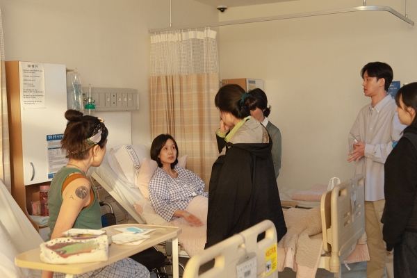 은진이가 병실에서 검사 대기 중에 지후 언니가 와서 잠깐 병원 밖으로 데리고 나가잖아요. 아기 낳고 나면 가장 하고 싶은 게 뭔지 물어보면서요. 지후 언니는 아이가 장화랑 우비 사서 물장난 하게 해주고 싶다고 말하는데, 그때 은진이 “나도 그거 좋아했는데!”라며 활짝 웃어요. 그 장면에서 은진이 아이처럼 웃는 모습이 너무 좋더라고요. 어린이의 마음이 느껴지기도 하고, 힘든 와중에 기쁨을 찾은 거 같기도 해서요. 영화를 보면 아기가 과연 잘 자랄 수 있을지에 대해 확신을 주는 게 잘 없는데, 어린 시절을 돌아보면서 아기의 처음을 같이 할 수 있겠구나 싶었던 장면이기도 합니다.