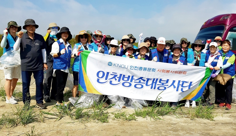 인천총동문회 인천방송대봉사단이 지난 8월 24일 인천 옹진군 대연평도에서 제2차 해양 폐그물 및 쓰레기수거 봉사활동을 진행했다.