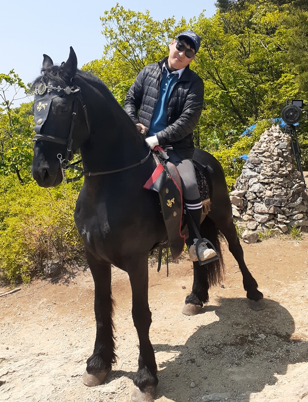 주인공이 타는 말의 캐스팅 과정 또한 흥미진진했다. 원래는 김 동문의 백마 ‘벤자민’이 주인공의 말로 예정돼 있었으나, 촬영용 더미 말에는 ‘백마’ 모델이 없어 급히 ‘흑마’로 교체해야 하는 상황이 발생했다. 최종적으로는 ‘폭군의 강렬한 이미지’를 살리기 위해 유럽산 프리시안(Friesian) 품종의 흑마 블랙스타가 선택됐다. 그는 자신의 ‘블랙스타’를 이렇게 평했다.