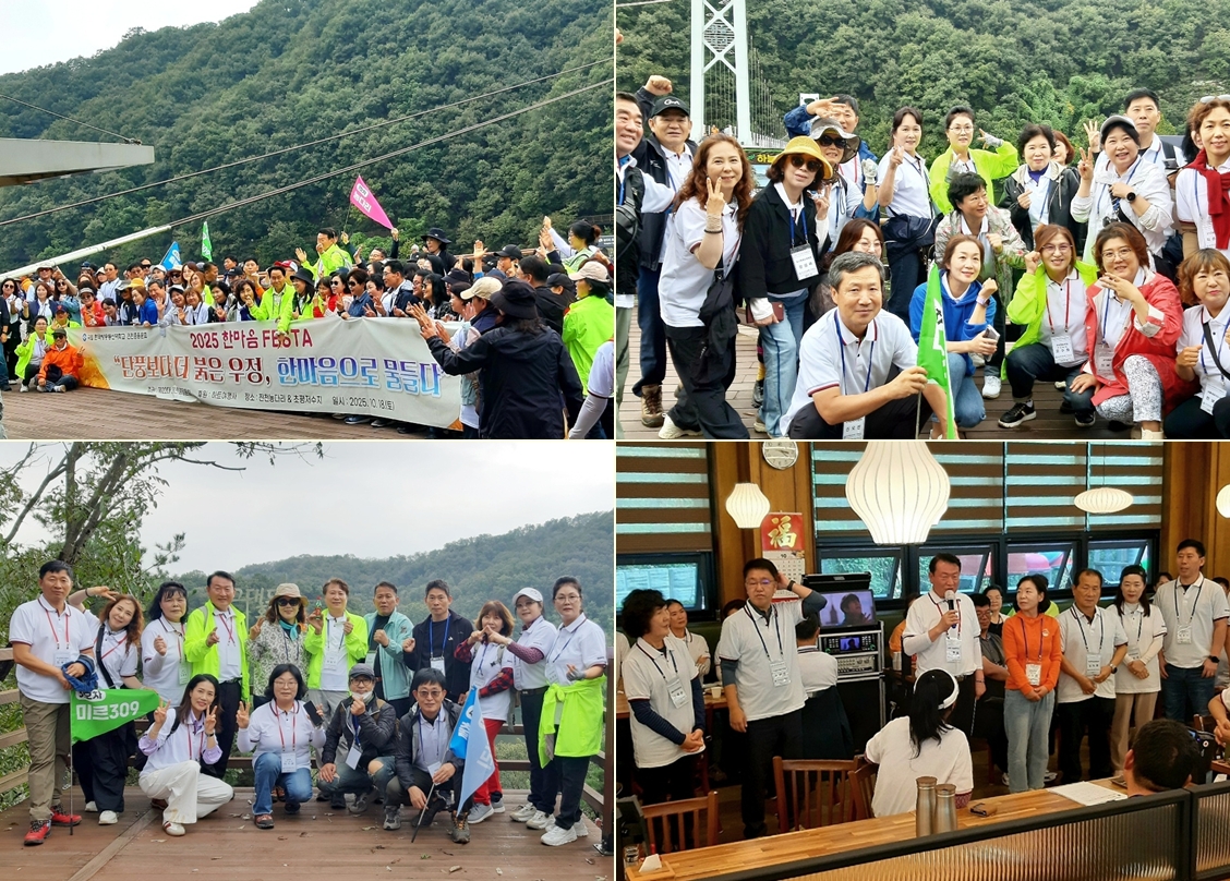 인천총동문회(회장 이병호)가 지난 18일 충북 진천 출렁다리 둘레길을 걸으며 ‘2025 한마음 FESTA’를 진행했다.