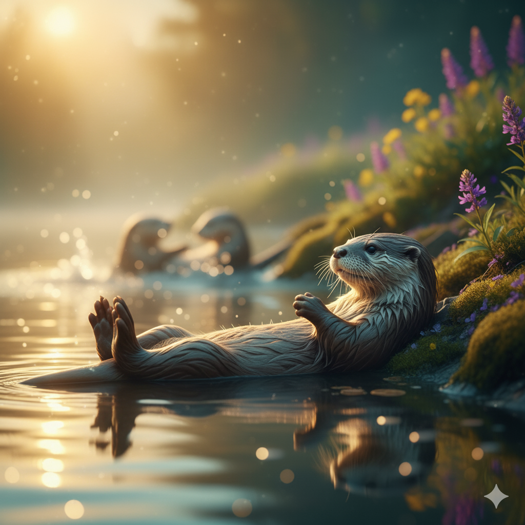 -주제 핵심: 자연 속에서 평화롭게 살아가는 수달들의 일상