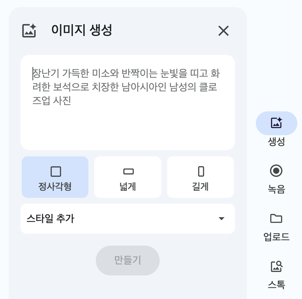 ③ 구글 비즈(Google Vids) 영상 및 멀티미디어 콘텐츠 생성용 도구이며, 나노바나나가 탑재돼 있습니다. 영상 스토리보드, 이미지 삽입, 영상 내 이미지 배경 변경 등에서 나노바나나를 활용할 수 있죠. 웹에서 vids.new에 접속 후 AI 생성 기능을 실행해 원하는 이미지의 설명을 입력하면 나노바나나로 이미지를 생성할 수 있습니다.