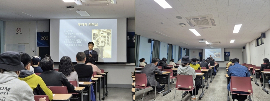 리더십 특강에는 양성주 4·3희생자유족회 상임부회장이 참석해 「공감으로 이끄는 리더, 제주 4·3에서 배우다」를 주제로 강연했다.양성주 부회장은 제주 4·3의 역사적 교훈을 통해 공동체 리더가 갖춰야 할 공감과 책임의 리더십의 중요성을 강조했다. 그는 4·3의 법률적 정의와 함께 당시 수많은 인명 및 재산 피해, 그리고 연좌제로 인한 사회적 고통을 언급하며 “진정한 리더는 타인의 아픔을 이해하고 소통으로 화합을 이끌어야 한다”고라 전했다.