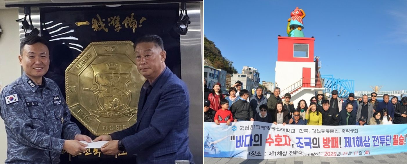 강원총동문회(회장 김희목)가 지난 11월 11일 오전, 제1해상전투단을 방문해 입학설명회와 안보체험 견학을 진행했다.