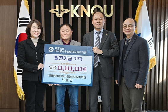 대학원 실용중국어학과를 졸업한 신동인 원우(일본언어문화학과)가 지난 17일 오후 2시 30분 고성환 총장을 만나 학과 발전을 위해 써달라며 발전기금 1천111만1천111원을 기탁했다. 이날 기탁식에는 신동인 원우와 고성환 총장, 장영재 기획처장, 손정애 대학원 실용중국어학과장이 참석했다.