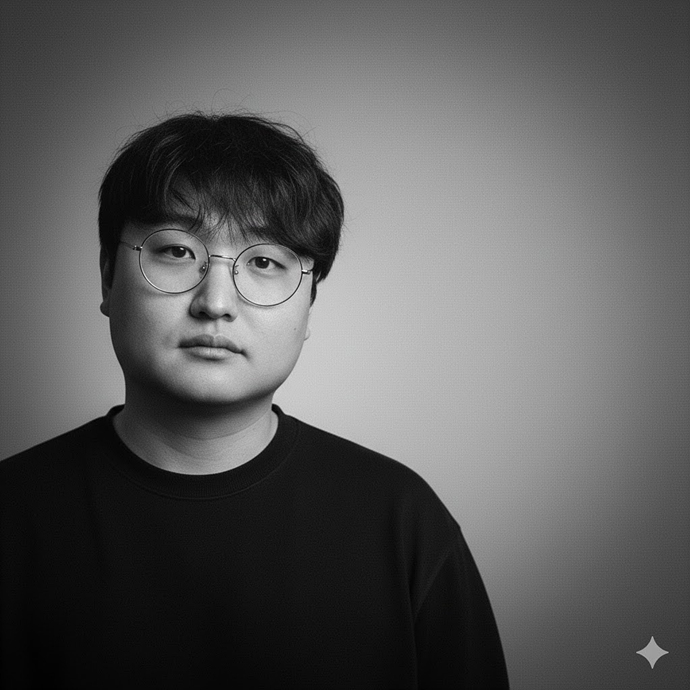 ④ 감성적인 흑백 프로필 사진 사진을 흑백으로 바꾸는 건 아주 쉽습니다. 흑백으로 바꾸려는 사진을 업로드 해서 “흑백 사진으로 바꿔줘”라고 요청하면 되죠. 하지만 그렇게 만들면 기존 사진을 흑백으로 변경하는 것에 그칩니다. 나노바나나를 사용하면 스튜디오에서 촬영한 것 같은 감성의 흑백 프로필 사진을 쉽게 생성할 수 있습니다. 아래 프롬프트를 활용하겠습니다.
