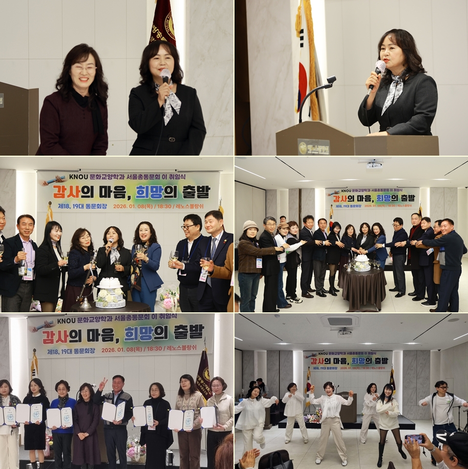 문화교양학과 서울총동문회가 지난 1월 8일 6시 30분, 서울 왕십리 레노스블랑쉬에서 동문, 재학생 130여 명이 참석한 가운데 이·취임식을 개최했다.