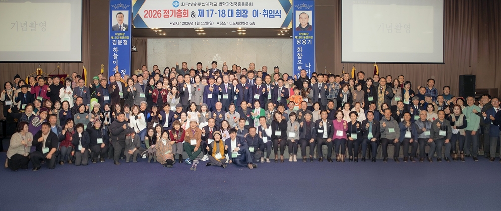 법학과 전국총동문회가 지난 1월 11일 왕십리 디노체컨벤션에서 280여 명의 동문, 재학생들이 참석한 가운데 정기총회 및 제17~18대 동문회장 이·취임식을 가졌다.