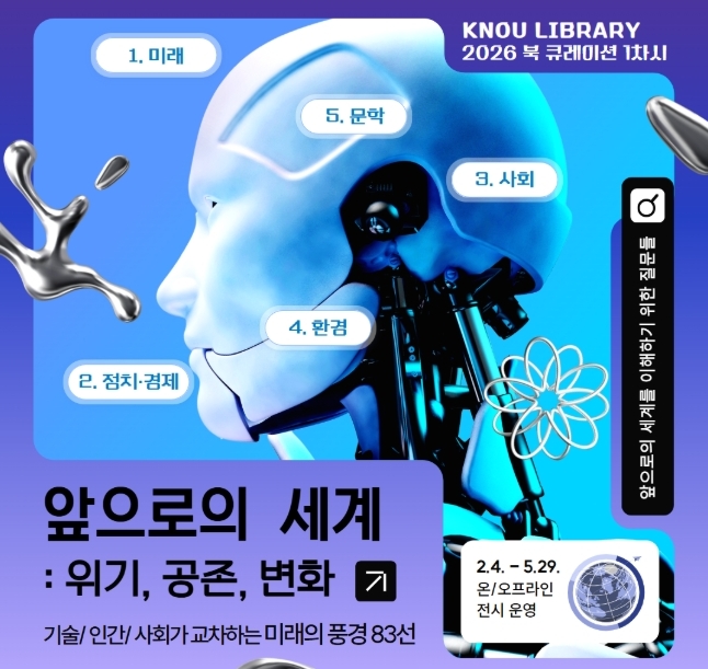 중앙도서관(관장 김진욱)이 학우들을 비롯해 방송대 구성원의 독서활동을 지원하고자 ‘앞으로의 세계: 위기, 공존, 변화’를 주제로 큐레이션 도서를 선정, 목록과 소장 정보를 제공했다. 이번 큐레이션은 2월 4일부터 5월 29일 온·오프라인으로 진행된다.