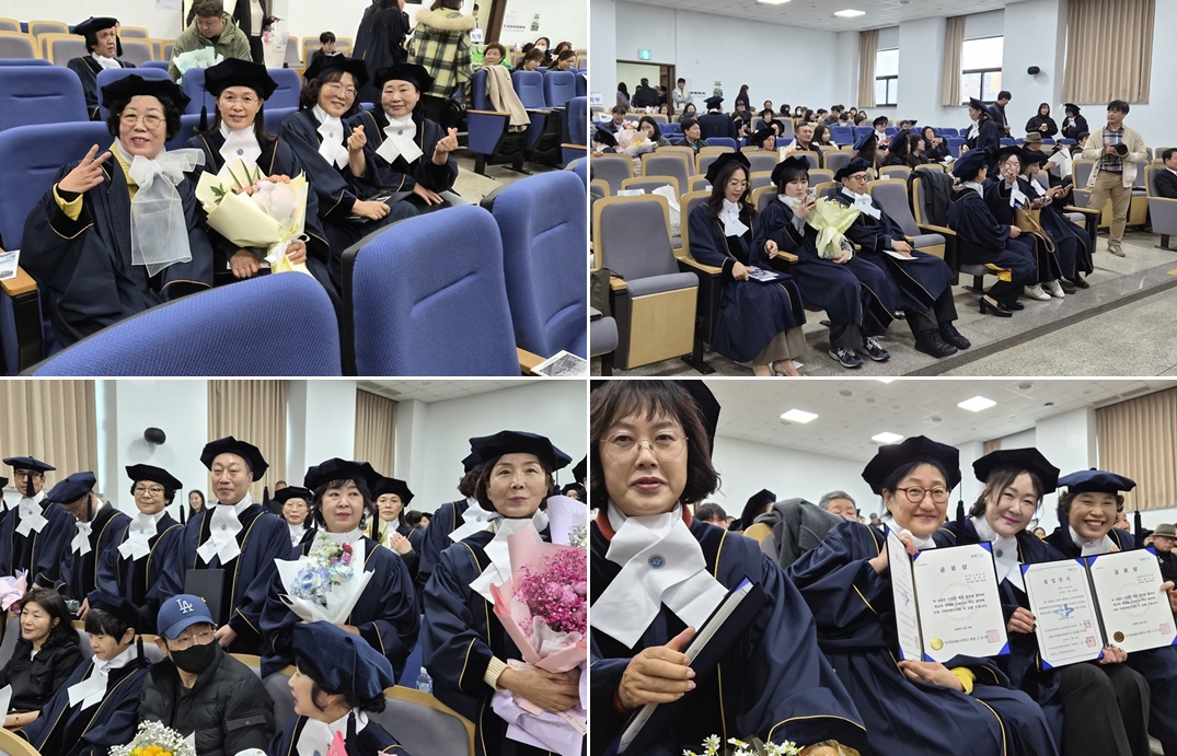 이날 총장공로상은 윤미순(생활체육)·하현미(문화교양)·유명희(청소년) 졸업생, 평생학습상에는 김용태(영문)·이영주(보건환경안전) 졸업생, 울산시장 표창에는 이효순(생활체육) 졸업생, 울산시의회장상은 박미진(청소년) 졸업생, 울산교육청장상은 이영경(경영) 졸업생, 울주군청장 표창은 이팔화(경영) 졸업생이 수상했다.