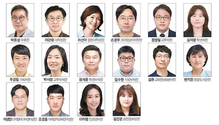 김 총장은 ‘방송대 5.0’ 시대를 함께 이끌어갈 보직진을 4월 6일 임명했다. <KNOU위클리>는 추후 김 총장을 비롯해 주요 보직진과의 인터뷰를 통해 김 총장의 4대 핵심 공약이었던 △AI 스마트 원격대학 구축 △고등교육 품격 강화 △평생학습 선도 대학 도약 △모두를 위한 공공대학 실현 등의 로드맵에 대한 실천 계획 등을 알아볼 예정이다. 아래는 새 보직진 명단.