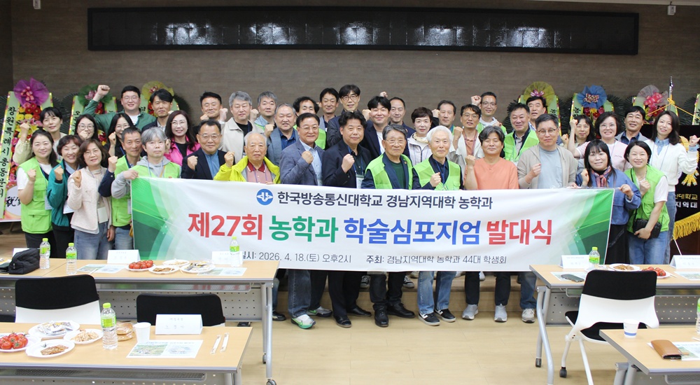 경남지역대학 농학과 학생회(회장 최성식)가 4월 18일 오후 2시, 경남 남해군 상주면 종합복지회관에서 제27회 농학과 학술심포지엄 발대식을 개최했다. 이번 행사는 재학생과 동문, 지역 관계자 등 50여 명이 참석한 가운데 성황리에 진행됐다.