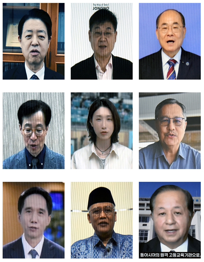 이외에도 김영호 제22대 국회 교육위원회 위원장, 곽상언 제22대 더불어민주당 국회의원, 임기근 기획예산처 장관, 정문헌 종로구청장, 최재원 전국국공립대학교총장협의회장(부산대 총장), 나석권 SK그룹 사회적가치연구원장, 김연경 전 한국 여자배구 국가대표와 중국·인도네시아·일본·태국 개방대 총장 등이 영상 축전을 통해 김종오 제9대 총장의 앞길에 응원의 메시지를 보냈다.