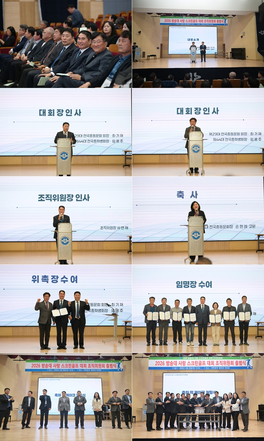전국총동문회(회장 최기재)와 전국총학생회(회장 임용주)가 주최하는 ‘2026년 방송대 사랑 스크린골프대회’를 앞두고 대회를 주관하는 ‘조직위원회(위원장 서연채)’가 지난 4월 28일 19시 대학본부 열린관 대강당에서 출범식을 가졌다.