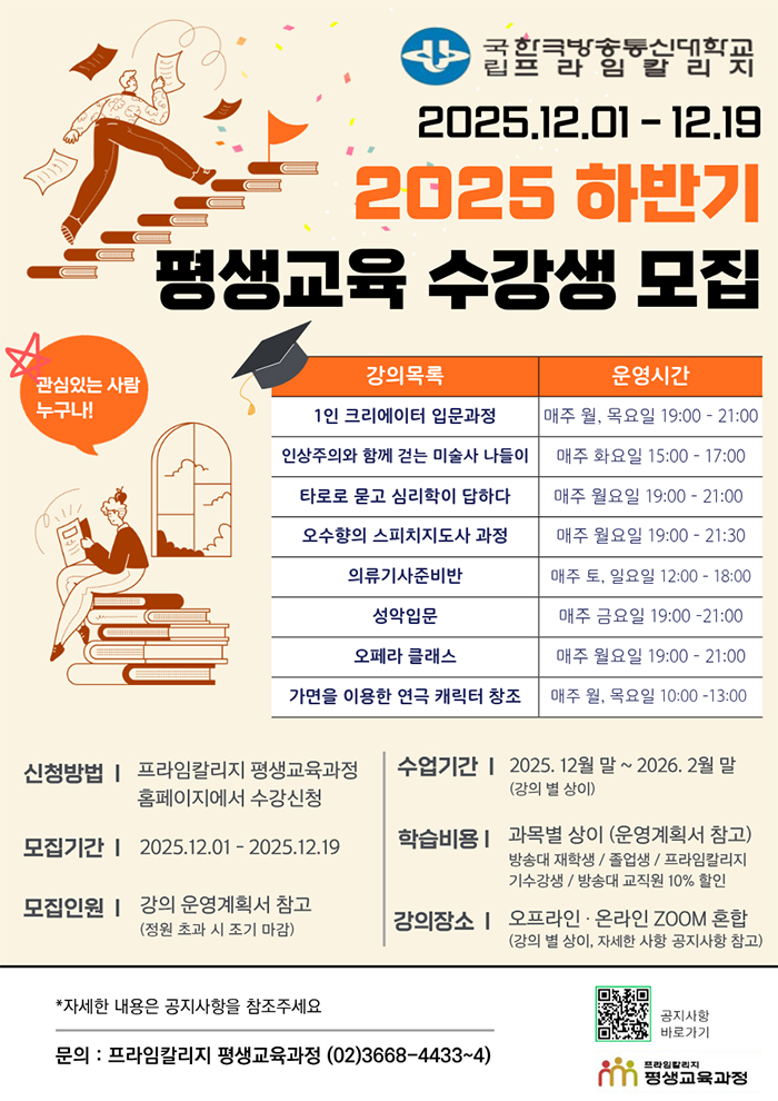 하반기 프라임칼리지 평생교육 수강생 모집