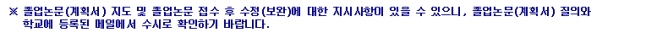 ☞ 지도한 내용이 이메일로도 발송 되지만 네트워크상에서 여러 메일 서버를 경유하여 전달되는 등의 이유로 학생에게 전달되지 않을 수 있으니 반드시 수시로 홈페이지의 학사정보 → 졸업학력평가 → 졸업논문(계획서)질의에서 확인 바람.